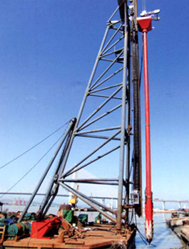 振沖器是振沖法施工中的特制機(jī)具。它產(chǎn)生水平向振動力振擠填料及周圍土體,而達(dá)到提高地基承載能力、減少沉降量、增加地基穩(wěn)定性、提高抗地震液化能力。 振沖法施工時除原地沖器外,尚需行走式起吊裝置,泵送輸水系統(tǒng),控制操作臺等。如工程單位缺乏起重機(jī),本廠還供應(yīng)振沖器施工樁架,樁架有單邊滾管立柱式、液壓步履式、簡易履帶式等。